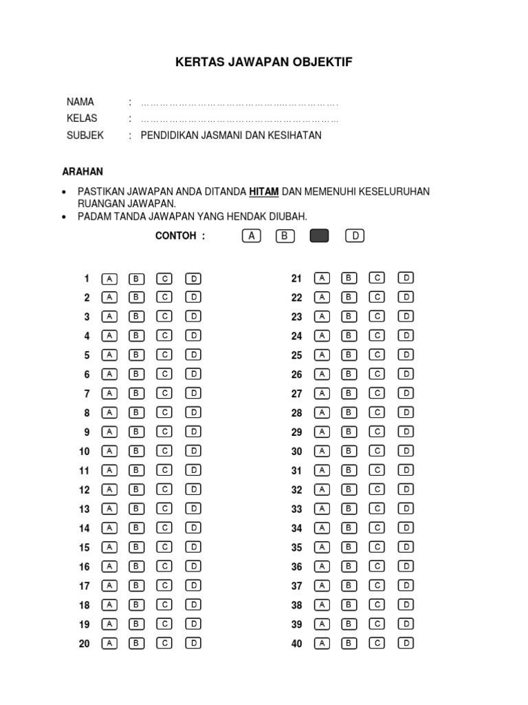 Kertas Jawapan Objektif 40 Soalan Pdf